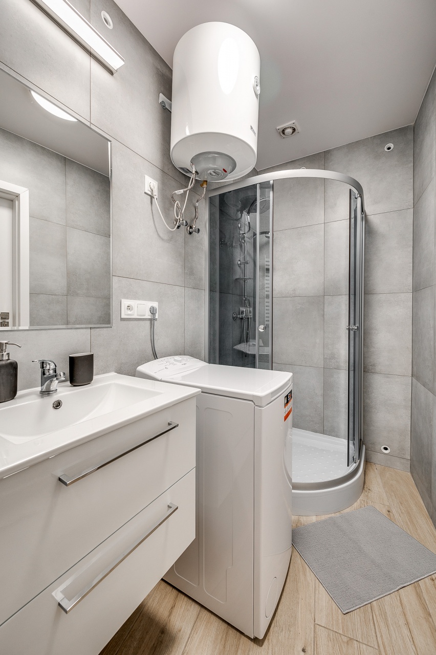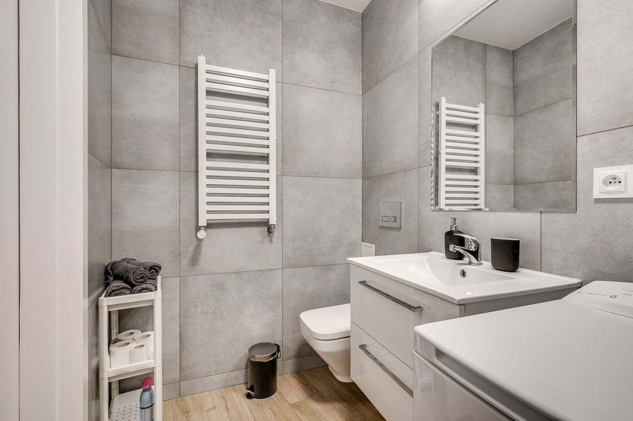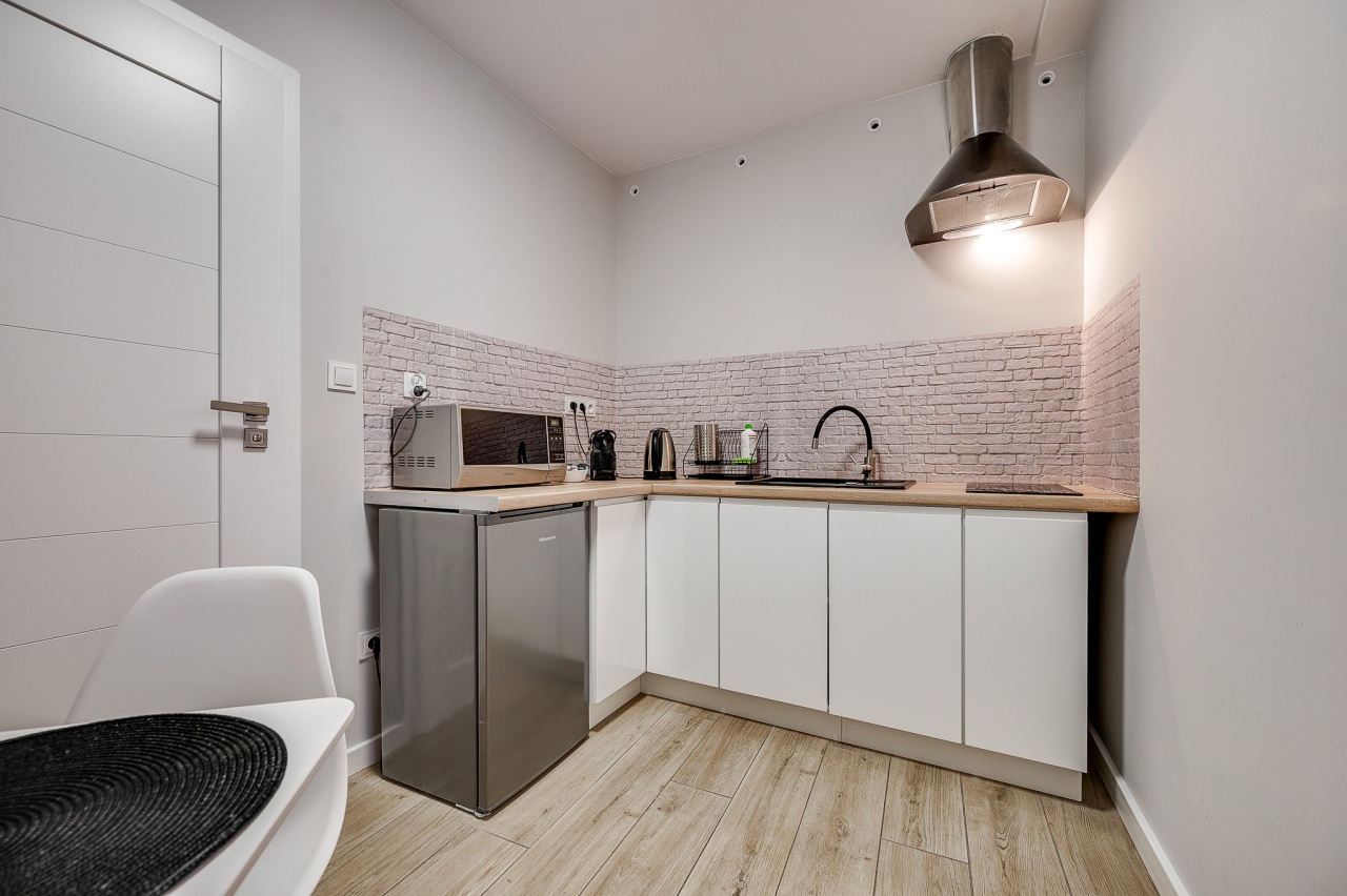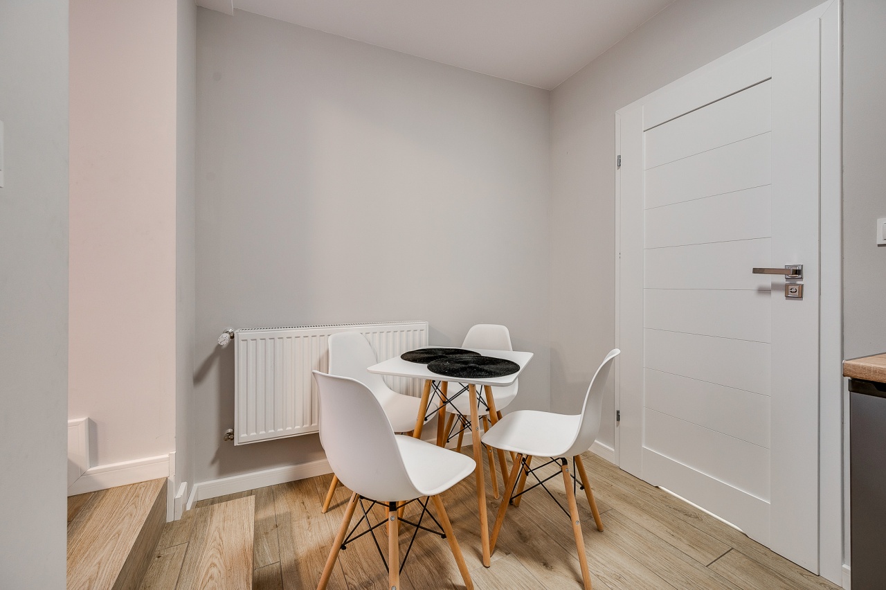 W tym komfortowym i przytulnym apartamencie znajduje się duży salon w którym znajdują się dwa pojedyncze łóżka oraz wygodna rozkładana sofa.Do dyspozycji znajduje się aneks kuchenny w którym znajduje się wszystko co potrzeba (czajnik, piec wraz z piekarnikiem, kuchenka mikrofalowa lodówka, ekspres do kawy)prywatna łazienka wraz z pralką duża szafa. Stół jadalniany z krzesłami dla 4 osób. Do dyspozycji dla Naszych gości przygotowaliśmy komplet ręczników oraz smaczną kawę na czas pobytu