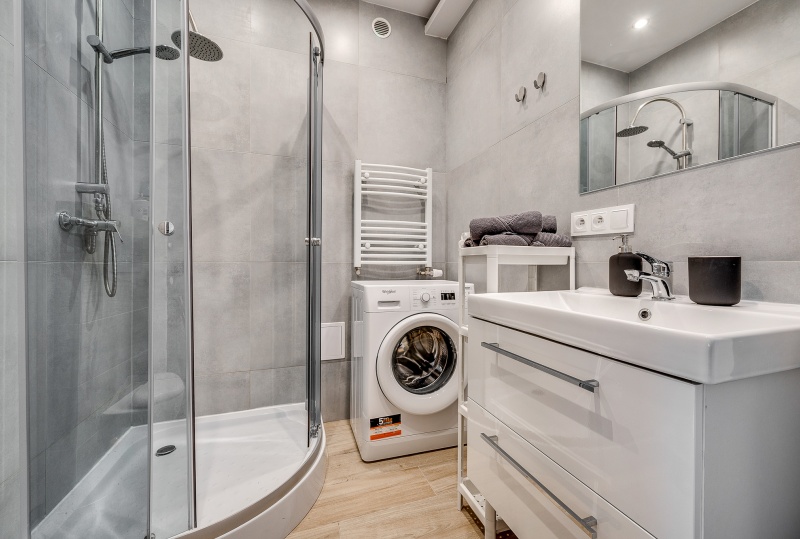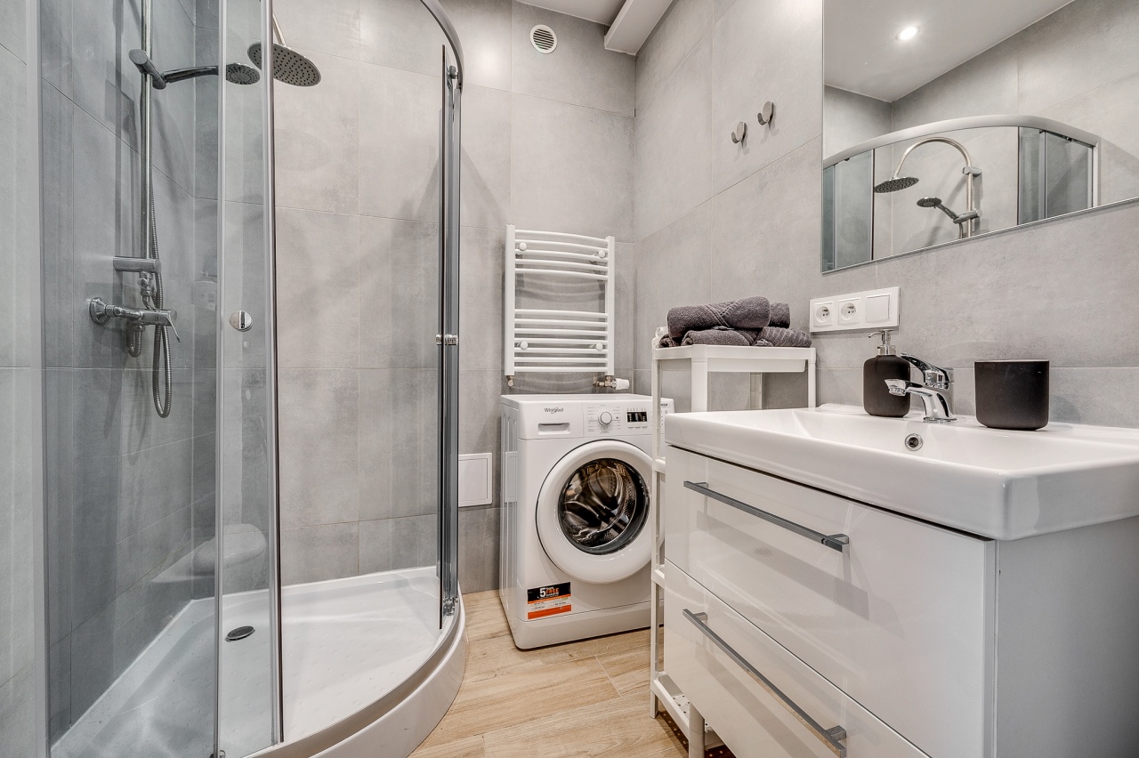 W sypialni znajdują się dwa łóżka pojedyncze. Aneks kuchenny jest wyposażony w niezbędne akcesoria . Znajduje się w nim pełnowymiarowa lodówka, płyta kuchenna wraz z piekarnikiem, kuchenka mikrofalowa, czajnik, ekspres do kawy, przybory kuchenne, garnki, patelnie, naczynia. Apartament posiada prywatna łazienkę z prysznicem , toaletą , pralką oraz suszarką do włosów. Do dyspozycji dla Naszych gości przygotowaliśmy komplet ręczników oraz smaczną kawę na czas pobytu.